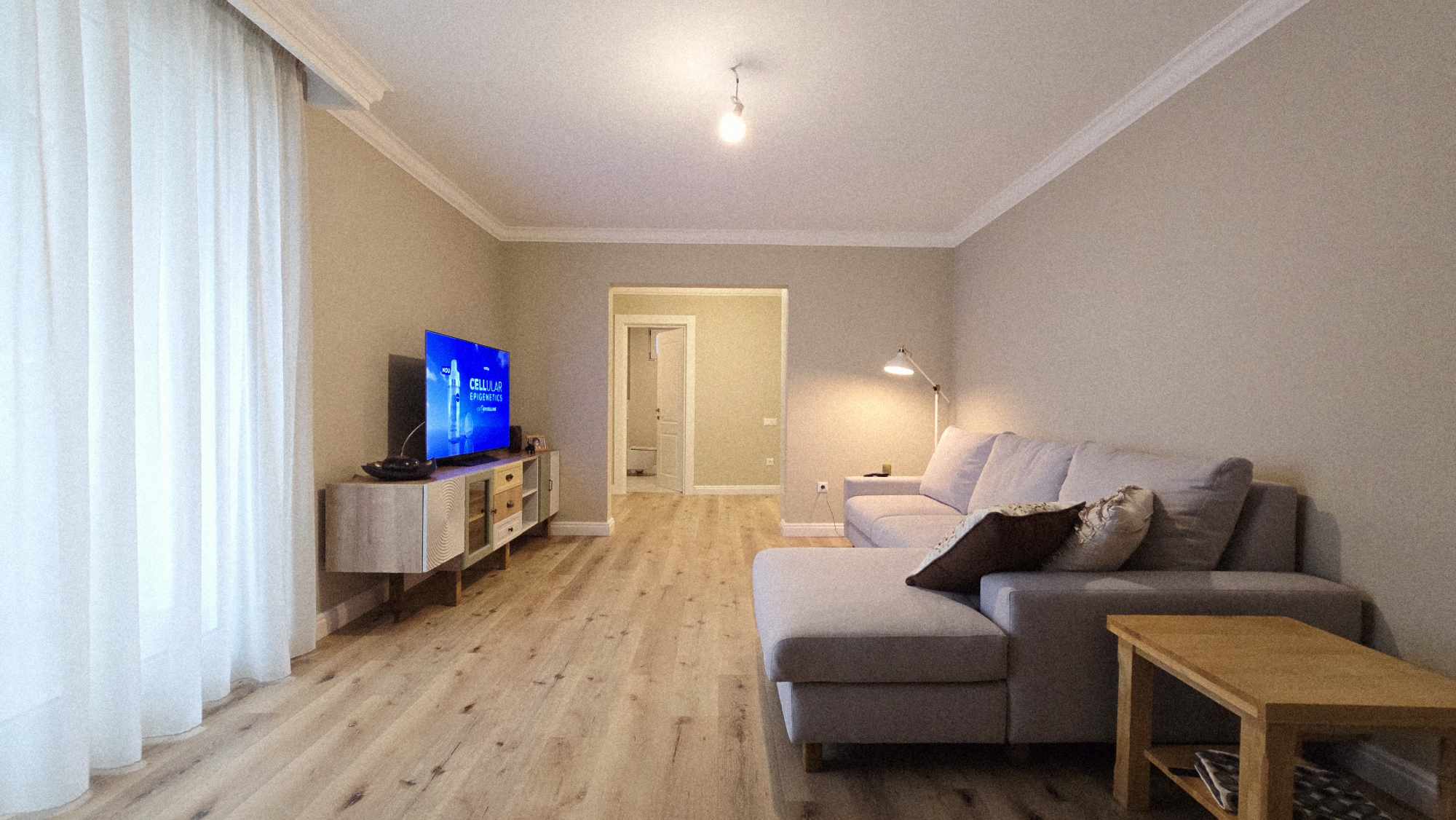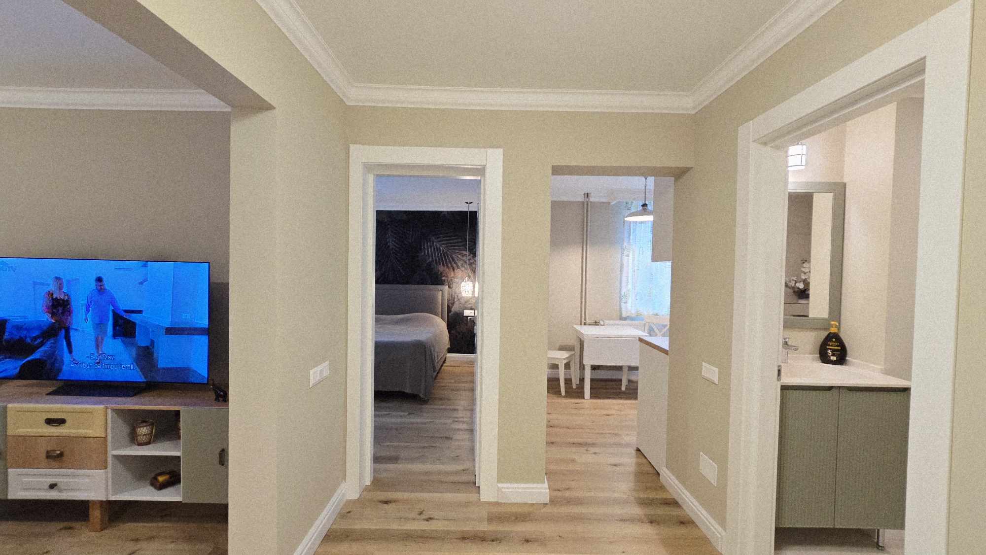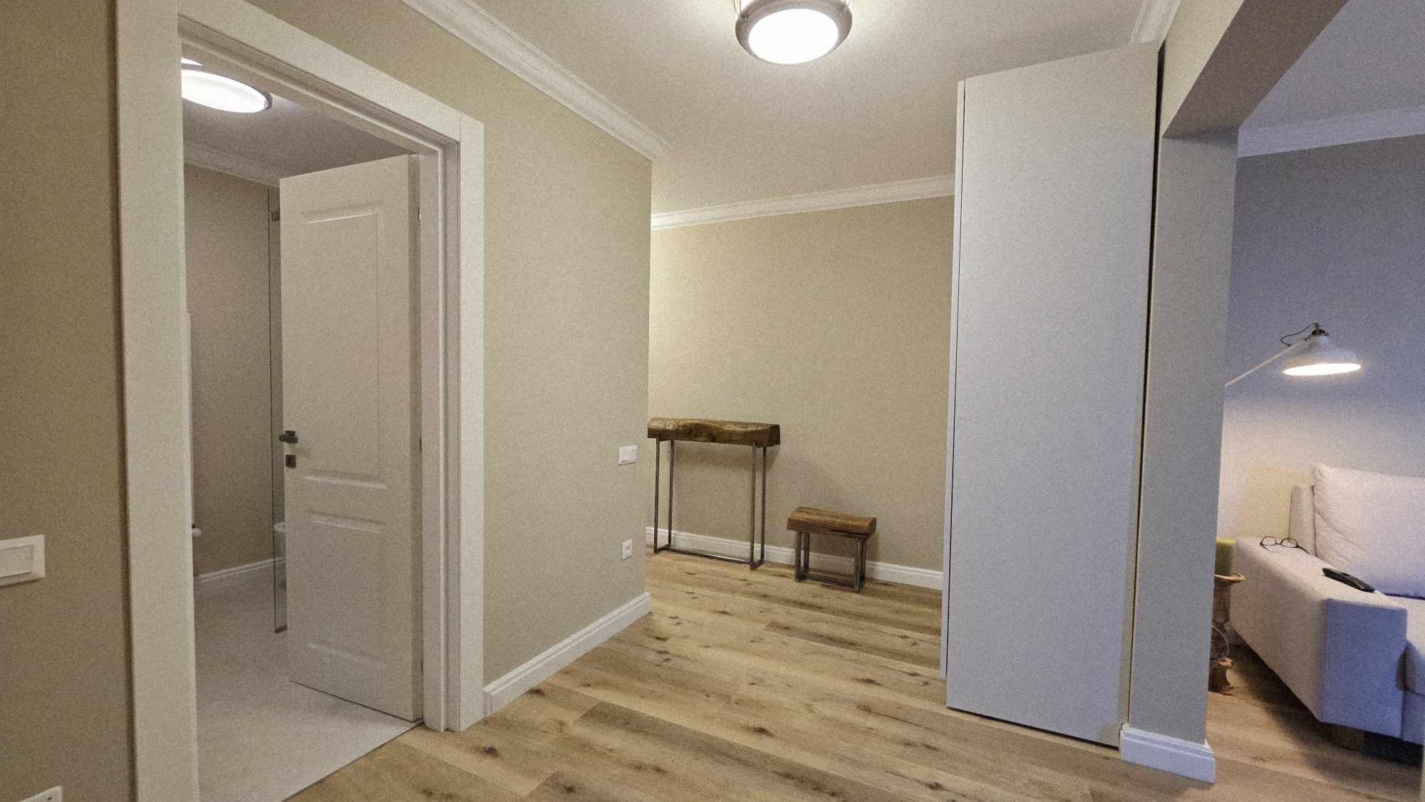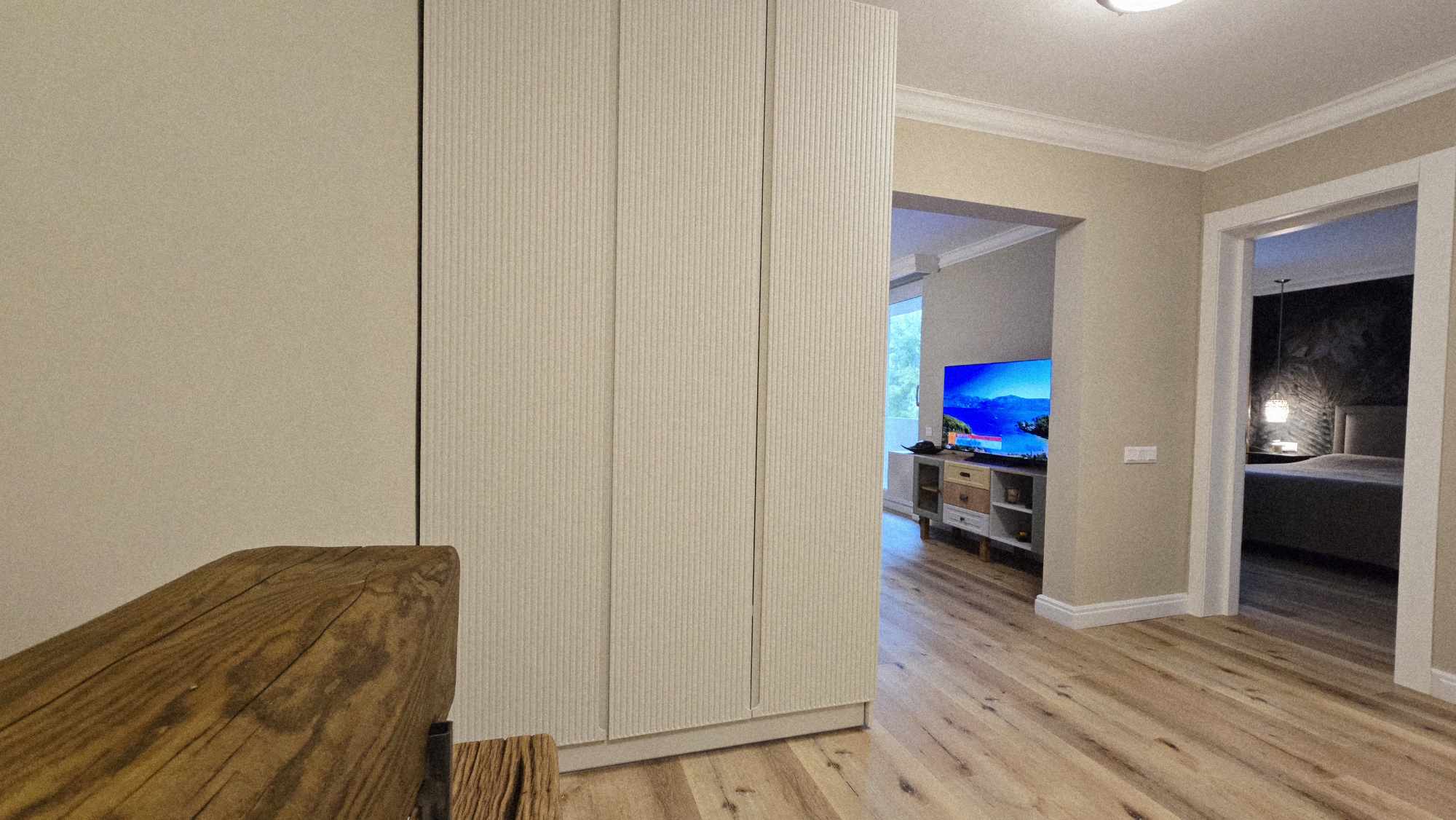 Desigur, elemente definitorii ale unui apartament se regăsesc și aici – elemente ale renovării impecabil definite,design și materiale ultra premium folosite , spații bine definite, modificarea acestui apartament fiind făcută momentan în zona de living, unul dintre dormitoare a fost modificat în dressing, balconul ultra generos cu ieșire din living ,  un dormitor și suficiente spații de depozitare în perimetrul holului. Totuși, nu doar poziționarea excelentă si nici cei  aprox. 72 de metri pătrați utili + balcon ai apartamentului îl fac atât de demn de atenția dumneavoastra, ci configurația arhitecturală moderna, materialele folosite in renovare și designul său interior.