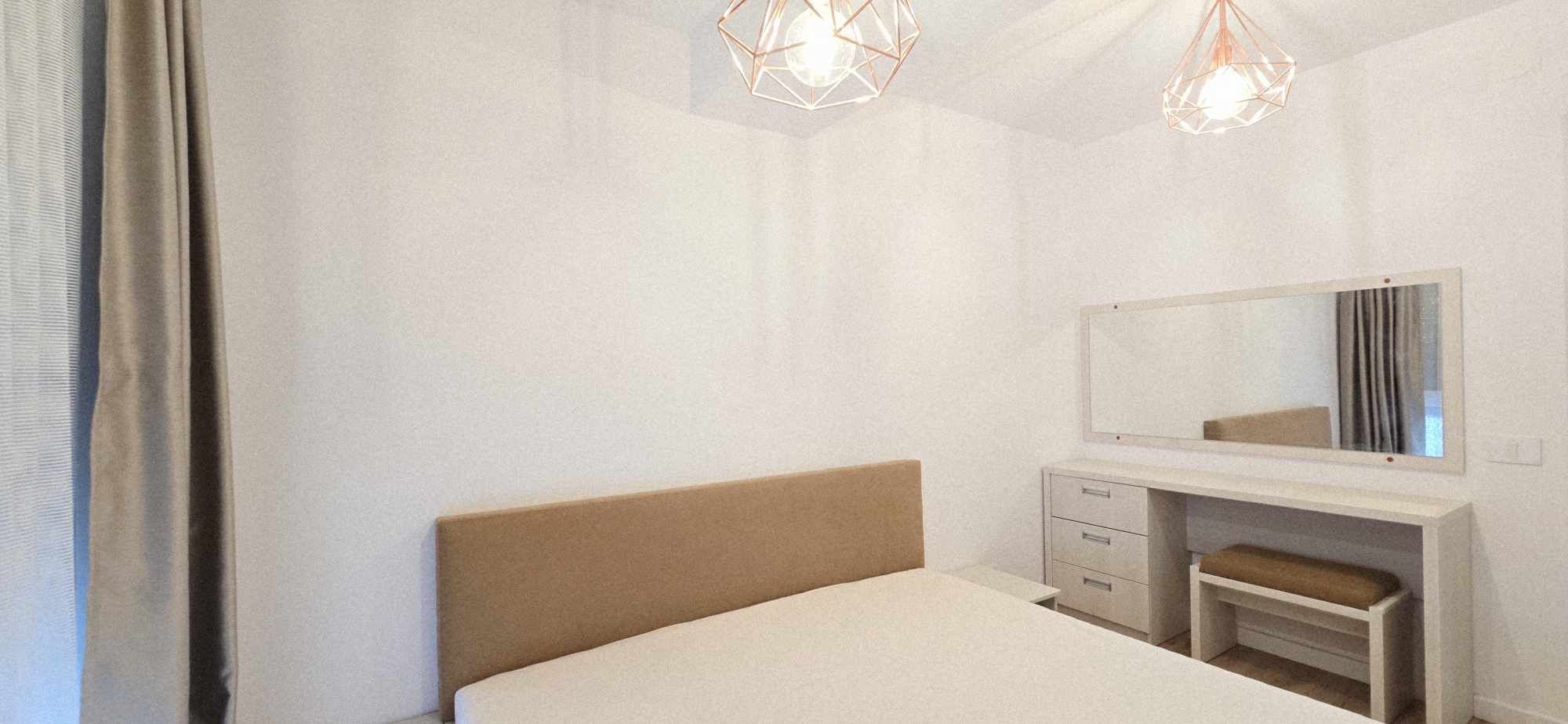 Proprietatea are 2 camere în suprafață construită de 70 mp, iar suprafața utilă de 50 mp plus balcon de 6 mp. Imobilul este complet decomandat fiind compus din: hol generos cu multiple spații de depozitare, dressing de hol, bucătărie separată, living generos cu ieșire în balcon, dormitor matrimonial, baie cu cadă, are orientare Vestică, situat la etajul 1. Dispune de un dormitor spațios având mobilier de calitate, mobilier de bucătărie cu electrocasnice, televizor SMART , aer condiționat, mobilat și utilat până la cele mai exigente detalii. Apartamentul dispune de încălzire în pardoseală, termostat de ambient, contorizare individuală, rezultând astfel o gestionare bună a cheltuielilor apartamentului.