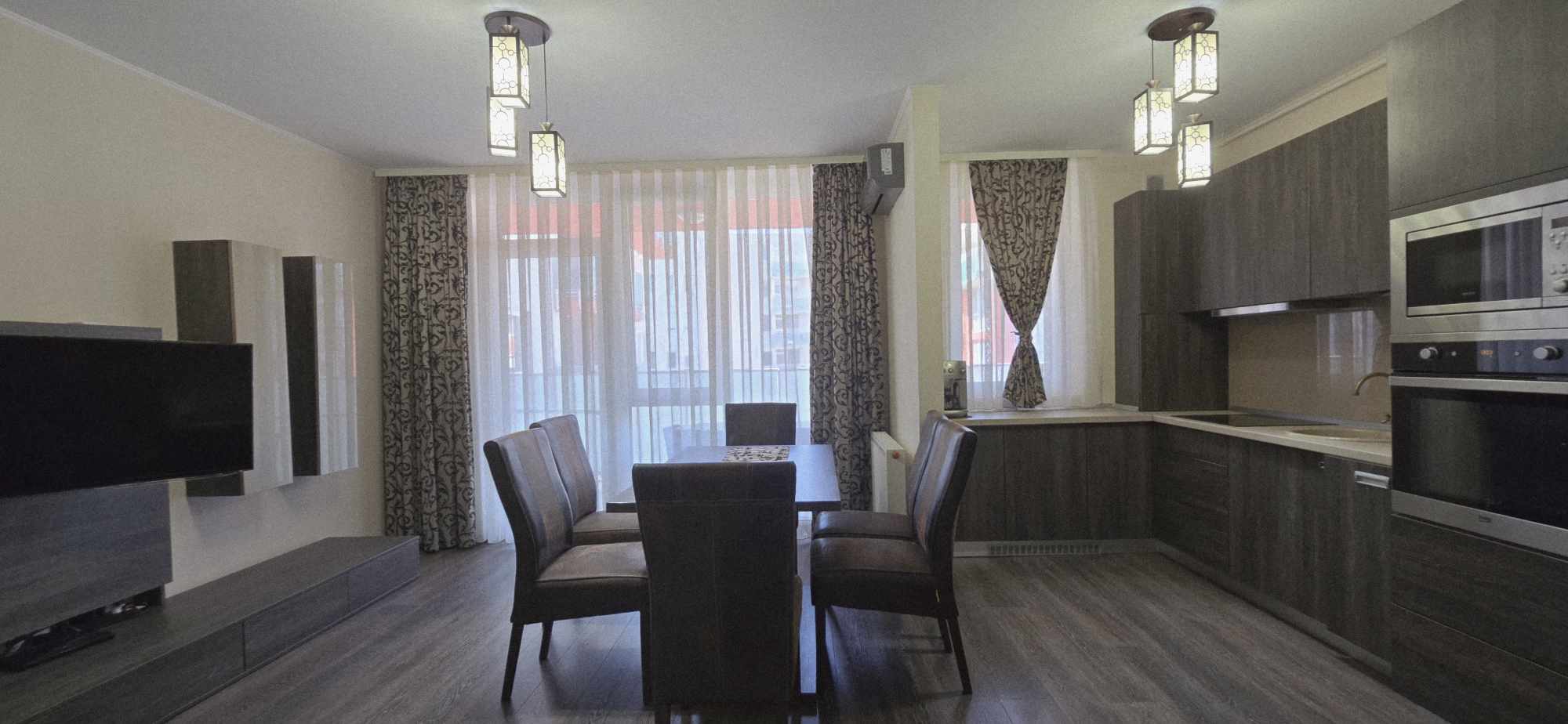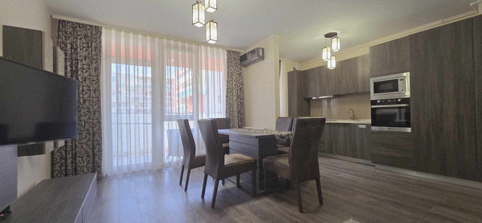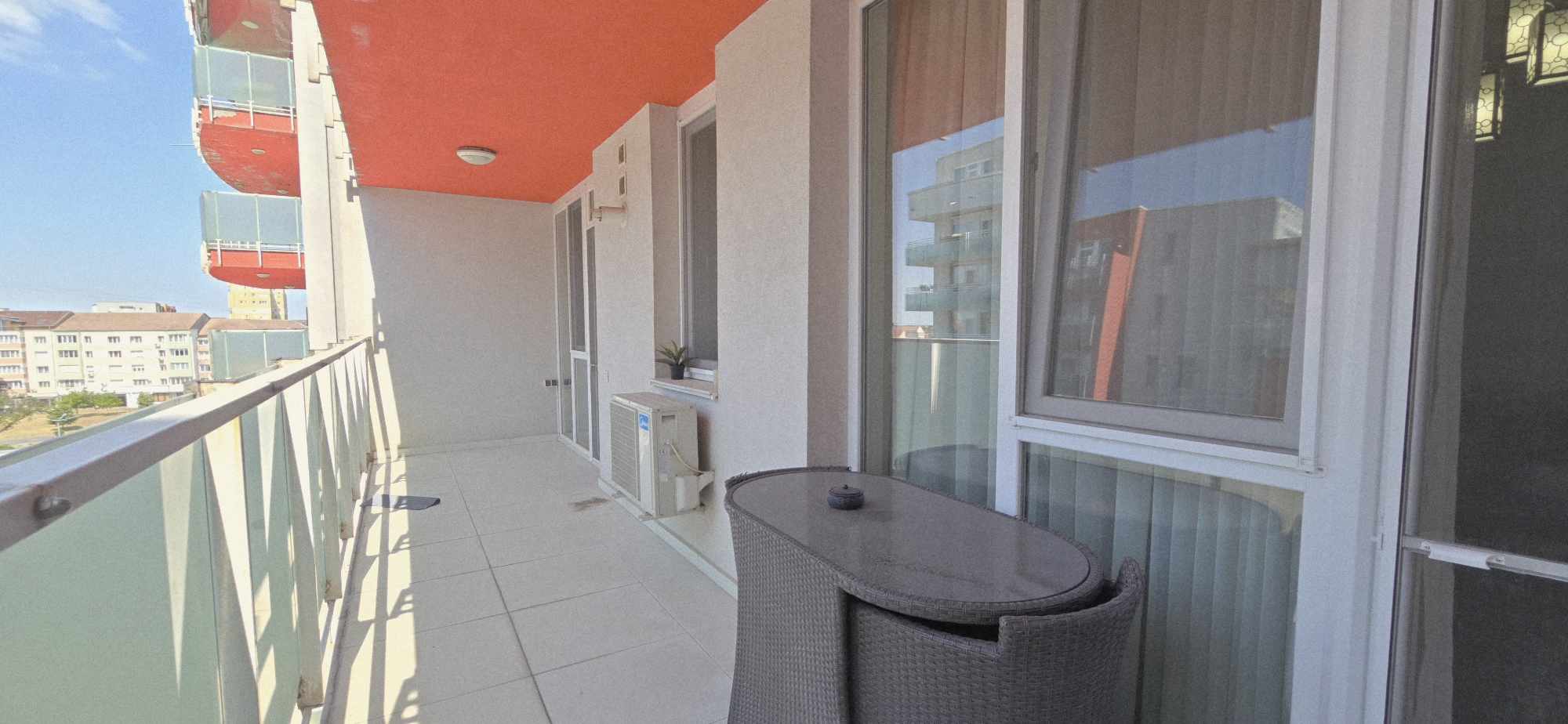 Cu o suprafata totala de 58 mp utili plus balcon de 14 mp si 91 mp construiti,  compartimentarea este urmatoarea: hol de intrare cu mobilier de dresing de hol,  living in spatiu deschis cu bucataria , dormitor ultrageneros cu camera de dressing de 4 mp bine definit atat ca design cat si ca si mobilier, baie generoasa dotata cu  dus , un balcon generos de 10 mp  ideal pentru momentele de relaxare, cu acces atat din zona de zi cat si din dormitor. Finisajele sunt de calitate superioara, incalzirea se face prin centrala proprie pe gaz,  costuri foarte reduse la intretinere, apartamentul dispune si de aer conditionat,  videointerfon, sistemul de incalzire este dotat cu cronotermostat de ambient pentru a asigura un confort ridicat la costuri cat mai reduse. Materialele utilizate pentru finisaje, precum toate dotarile si electrocasnicele sunt de calitate.  Comfortul si siguranta sunt elementele ce definesc aceasta locatie!