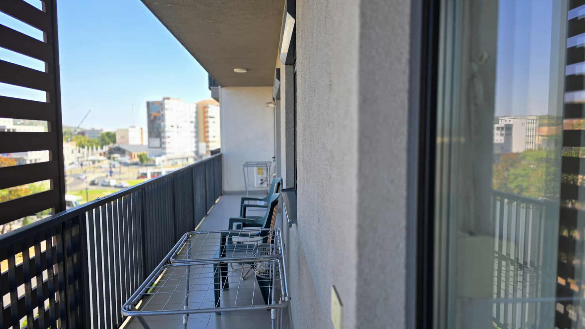 Compoziția apartamentului este astfel: living, bucătărie separată, hol cu baie de serviciu, doua dormitoare, din care unul matrimonial, 1 baie, balcon 12 mp ce cuprinde întreaga suprafață a apartamentului, accesul la balcon se face atât din living, cât și din dormitor. Finisajele și materialele sunt de bună calitate, de asemenea instalațiile electrice și sanitare, izolație exterioară de polistiren. Încălzirea se face prin centrală proprie pe gaz și apartamentul dispune și de aer condiționat, sistem Safe- House, videointerfon, sistemul de încălzire este dotat cu cronotermostat de ambient pentru a asigura un comfort ridicat la costuri cât mai reduse.