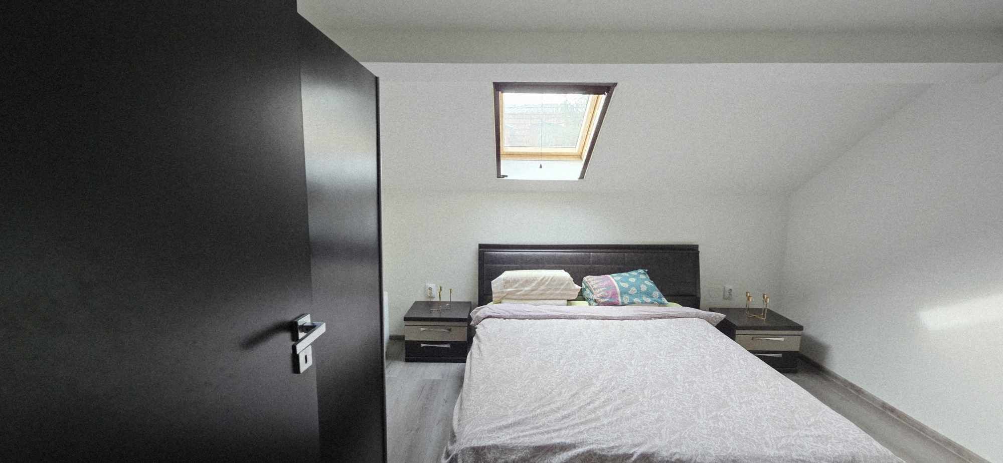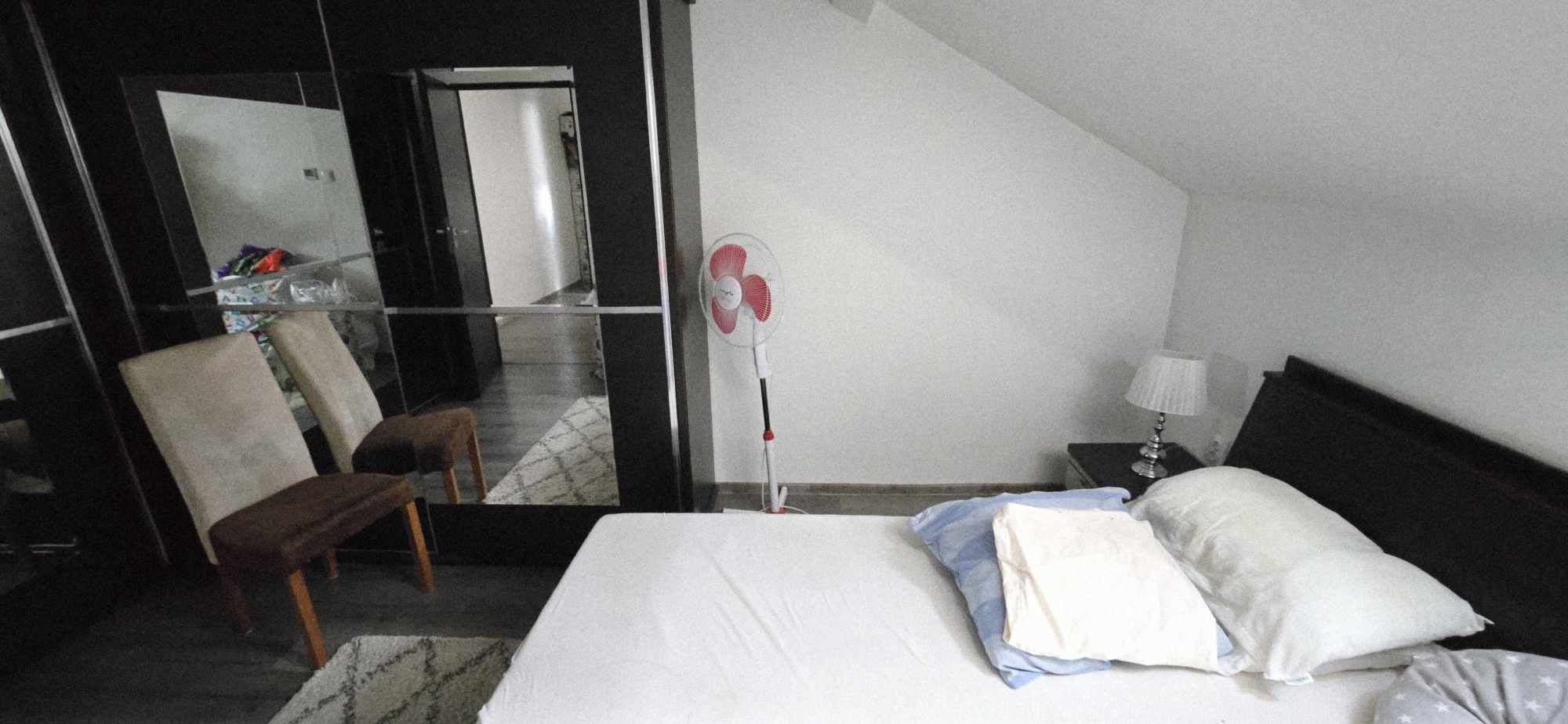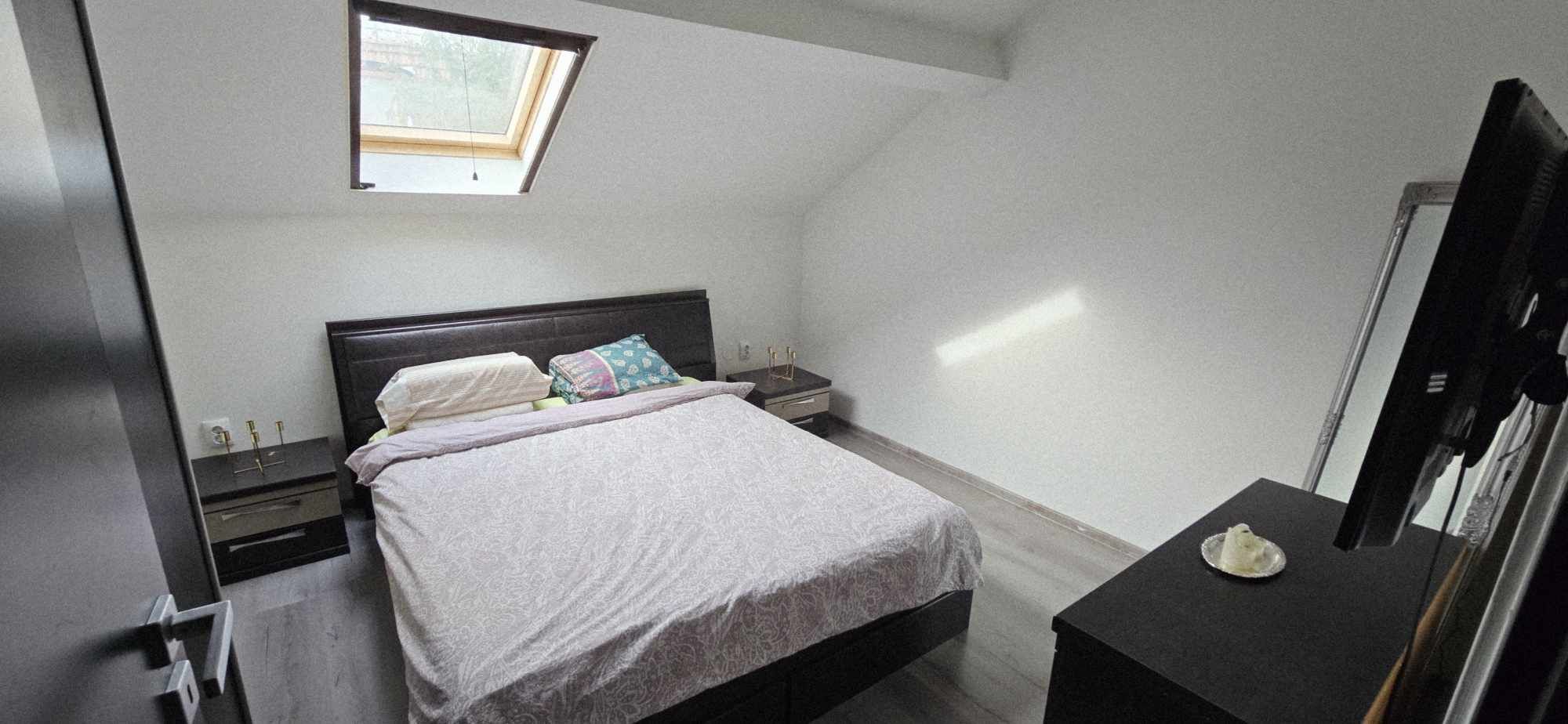 Această proprietate este dipusa pe o suprafata construita de aproximativ 120 mp si o suprafata utila compusa din plan parter si mansarda 100 mp cu o compartimentare optima compusa din hol de intrare, camera de zi cu loc de luat masa, bucatarie in spatiu semideschis, baie cu cabina de dus si un dormitor la parter, la etaj regasim un dormitor de mansarda ultrageneros + alte doua dormitoare si o baie. Dormitoarele de etaj cat si holul au ferestre de mansarda de tip Velux, orientarea tuturor incaperilor fiind spre Sud-Vest.