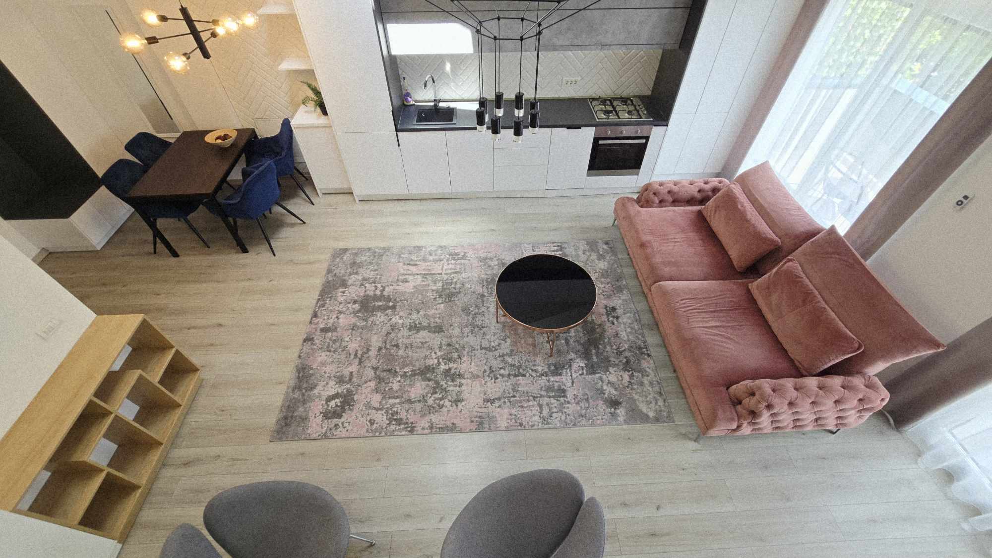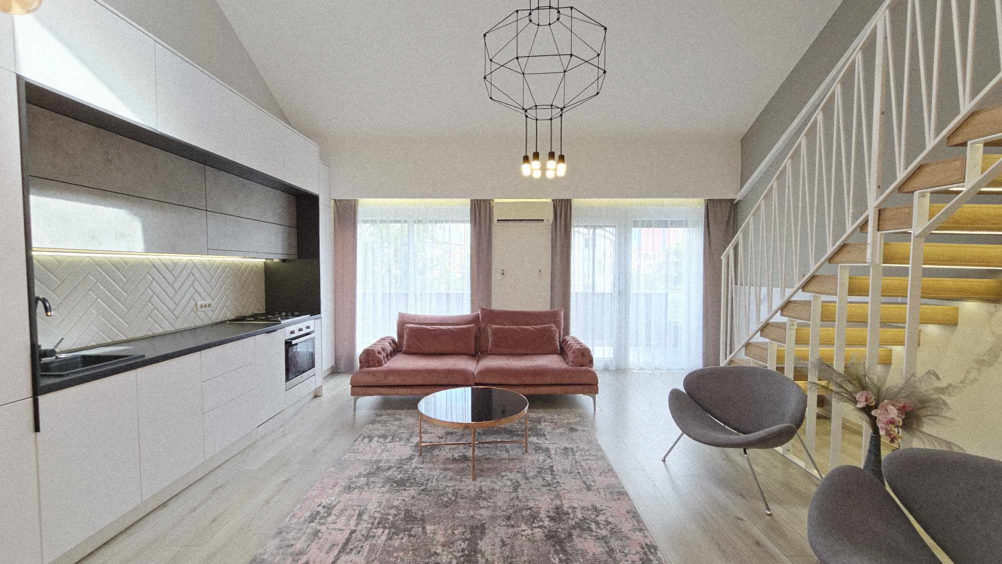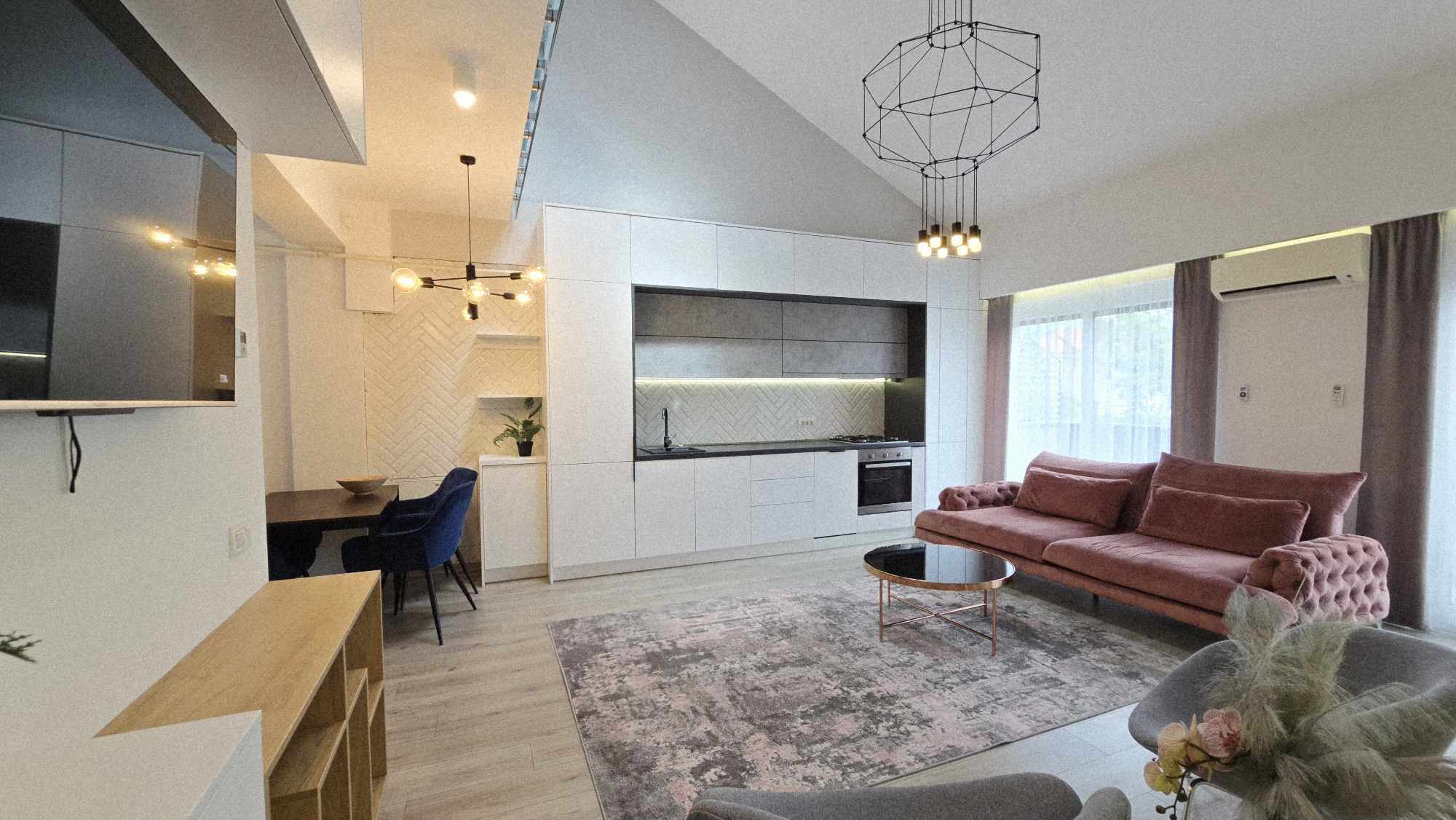 Designul modern , realizat cu mult bun gust cu piese de mobilier comandate special , atentia acordata fiecarui spatiu pana in cel mai mic detaliu, confera astfel proprietatii o unicitate, fiecare mp fiind gandit in mod inteligent!