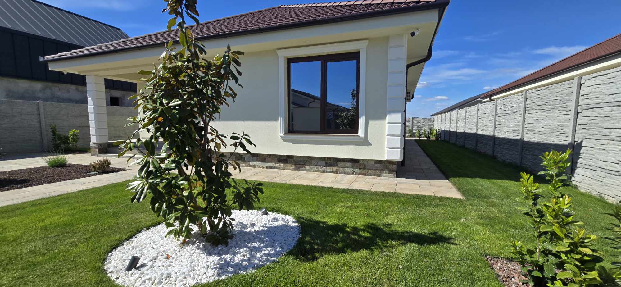 • gazon si sistem de irigatie profesional, plante ornamentale, lumini ambientale curte.