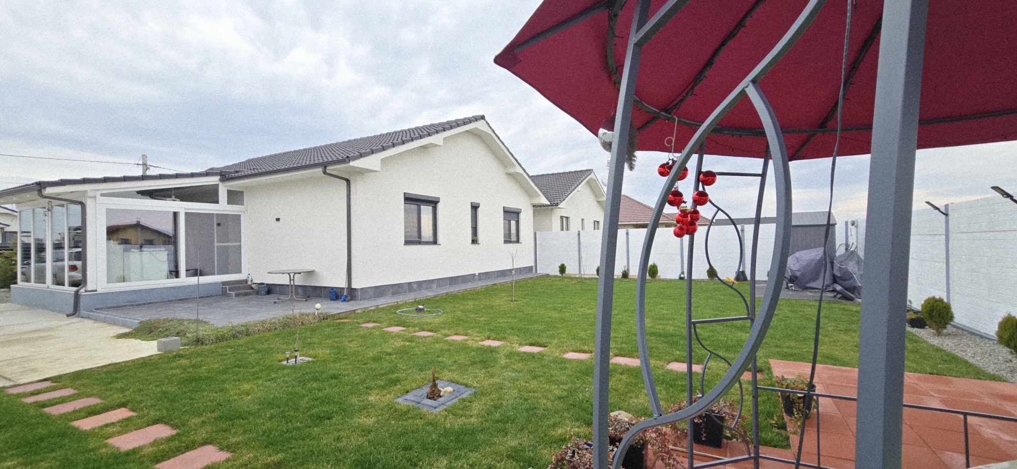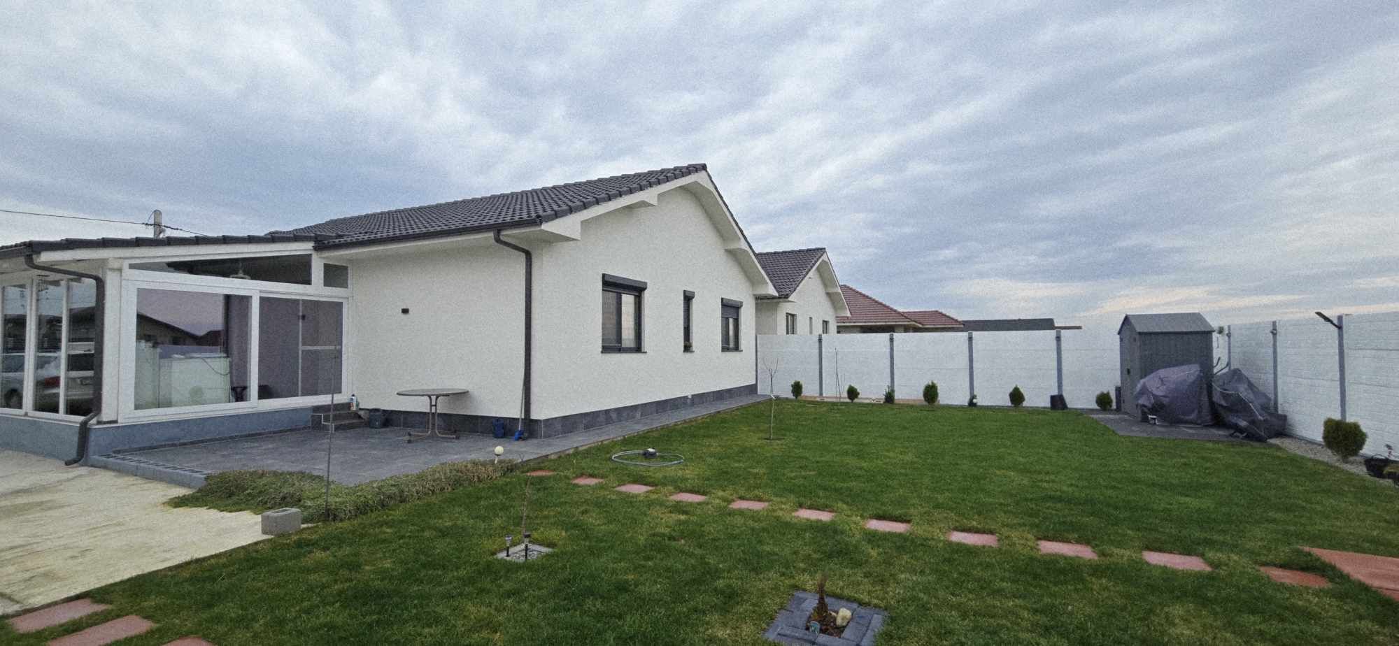 Cora Proiect Imobiliare va propune spre vanzare casa situata in Santandrei, zona Mega Image, in partea stanga a intrarii in localitate, cartier cu constructii noi, construita in regim parter, constructie 2023. Imobilul este finalizat in anul 2024, cu o amprenta bine definita asupra designului si dotarilor printr-o amenajare armonioasa, imaginile din fotografiile atasate fiind sugestive, toate acestea la un loc facand din aceasta casa un ambient primitor, imbietor. Suprafata terenului aferent acestui imobil este de 500 mp, cu o deschidere generoasa si un frontul stradal de 15 m liniari, curte bine amenajata cu gazon, spatiu verde, terasa inchisa in prelungirea casei, . In suprafata construita de 125 mp si suprafata locuibila utila aprox de 100 mp + terasa inchisa in suprafata de 20 mp.