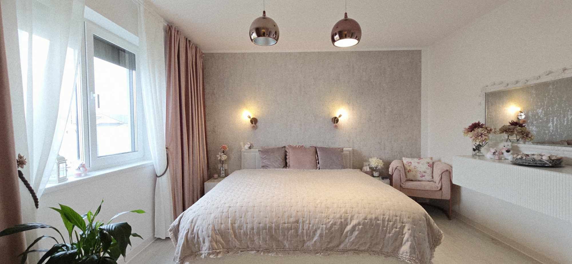 In amenajarea casei s-au folosit materiale de cea mai buna calitate. Holul si incaperile au pardosea din gresie marmurata, reamintim incalzirea in pardoseala. Curtea casei este frumos amenajata, corpuri de iluminat in curte, o terasa special amenajata pentru momentele de relaxare, curent si canalizare, fantana proprie. Compartimentarea casei este practica, fiecare mp a fost folosit inteligent, iar decoratiunile au fost bine gandite, fiind in deplina armonie si la cel mai inalt standard de calitate.