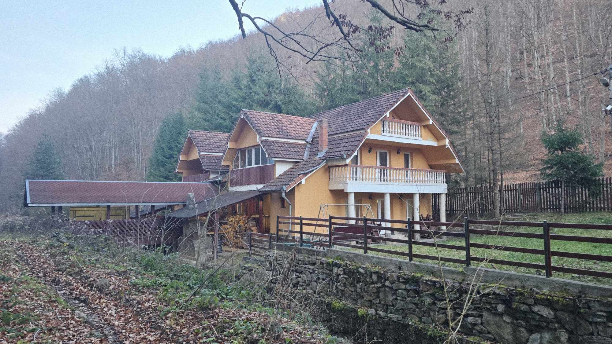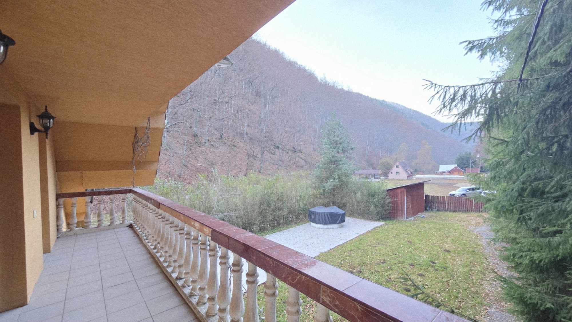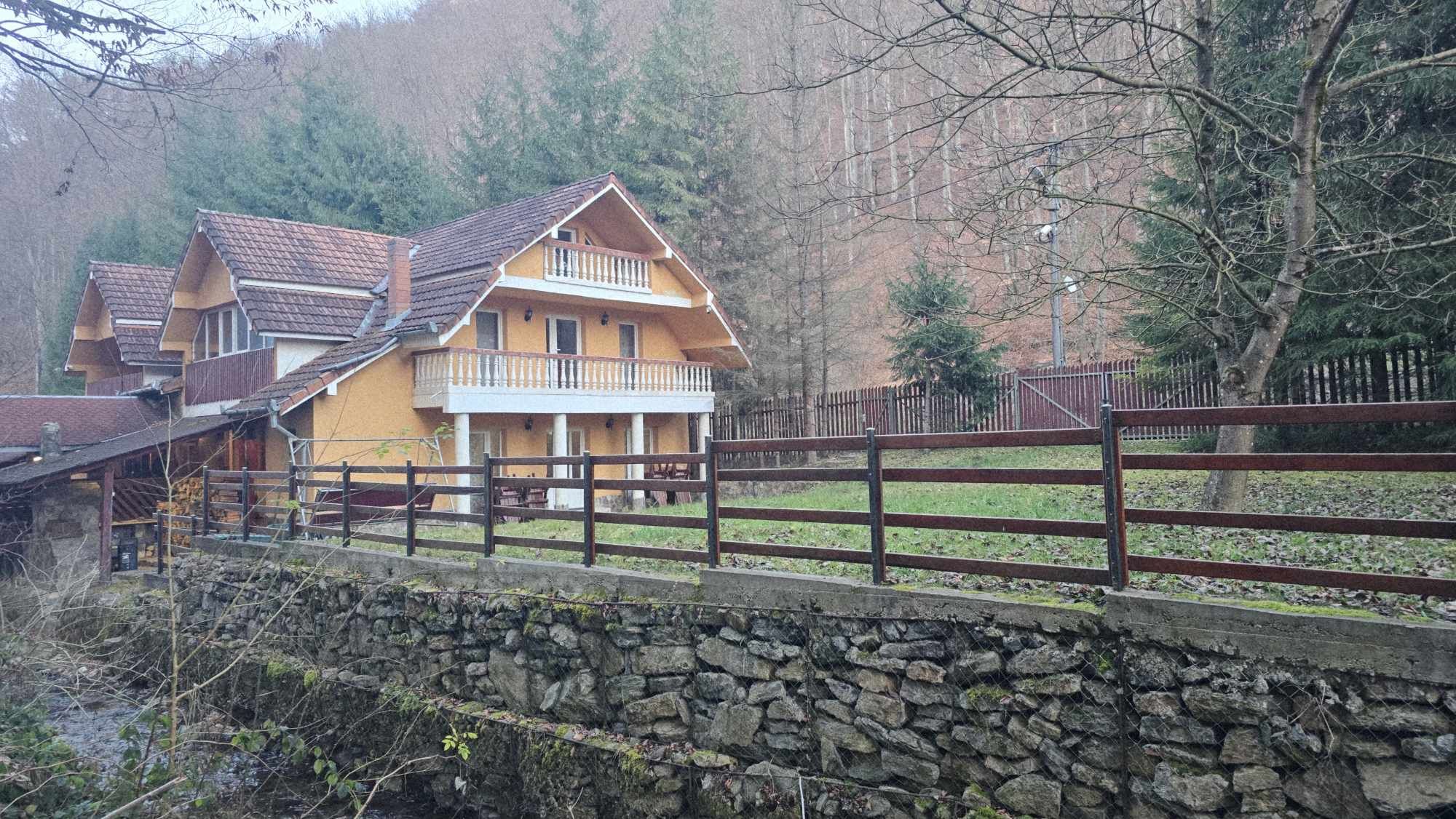Proprietatea este compusă din două clădiri identice ca compartimentare, cu suprafețe și dotări generoase, teren 600+600, defalcate cadastral suprafață totală 1200 mp, două corpuri de proprietate unite între ele pe care în descrierea următoare le vom denumi corpul 1 si corpul 2 cu suprafețe de 170 mp respectiv 200 mp, suprafața totală 370 mp, construcție relativ nouă construită cu simt de răspundere, cărămidă, izolație exterioară și multe altele. Filigorie din lemn masiv care unește cele două intrări ale corpurilor 1 și 2 în spațiu comun și care se extinde de la nivelul clădirilor până peste pârâul care traversează proprietatea, completând momentele de relaxare și întărind cadrul mirific pe care se află proprietatea și panorama acestei proprietăți.
