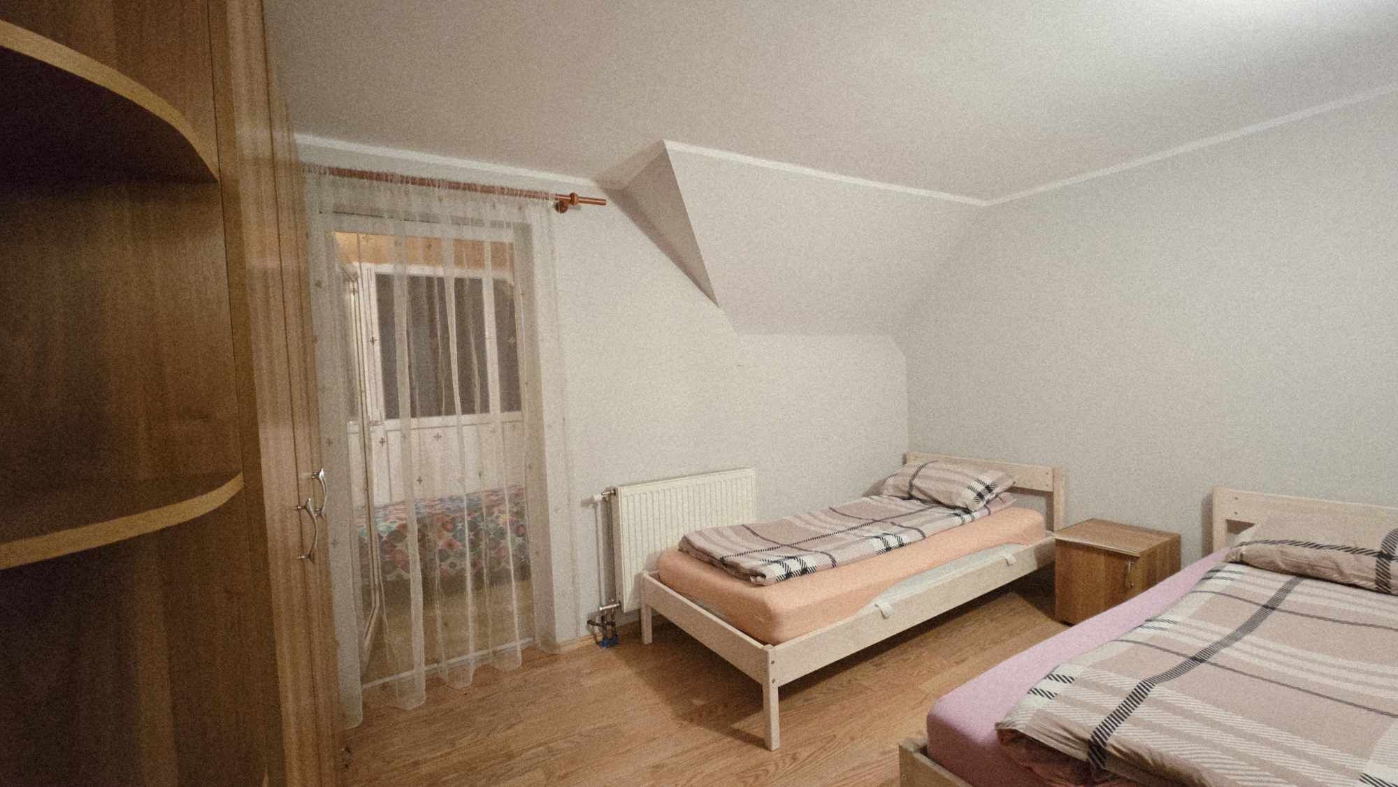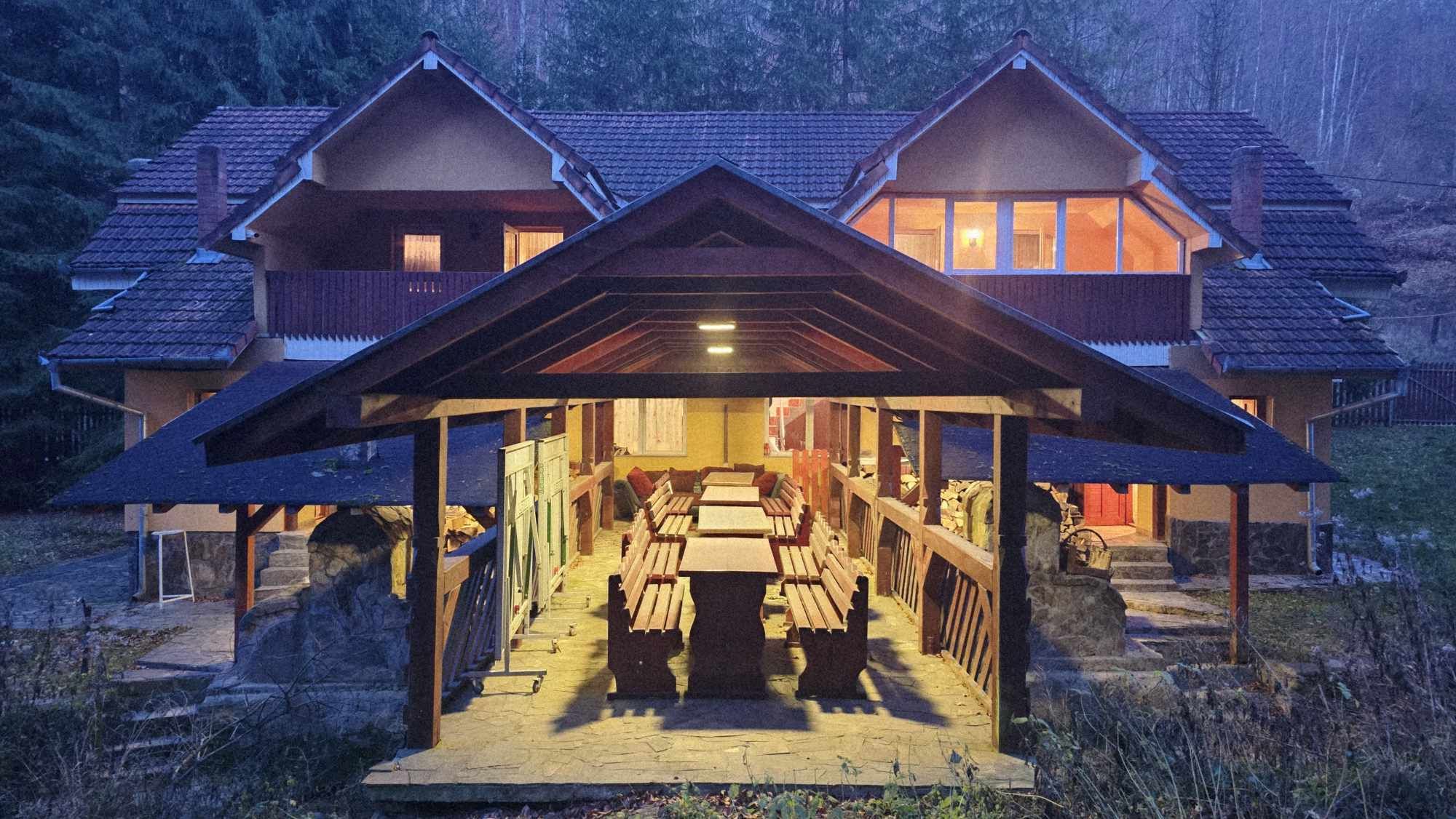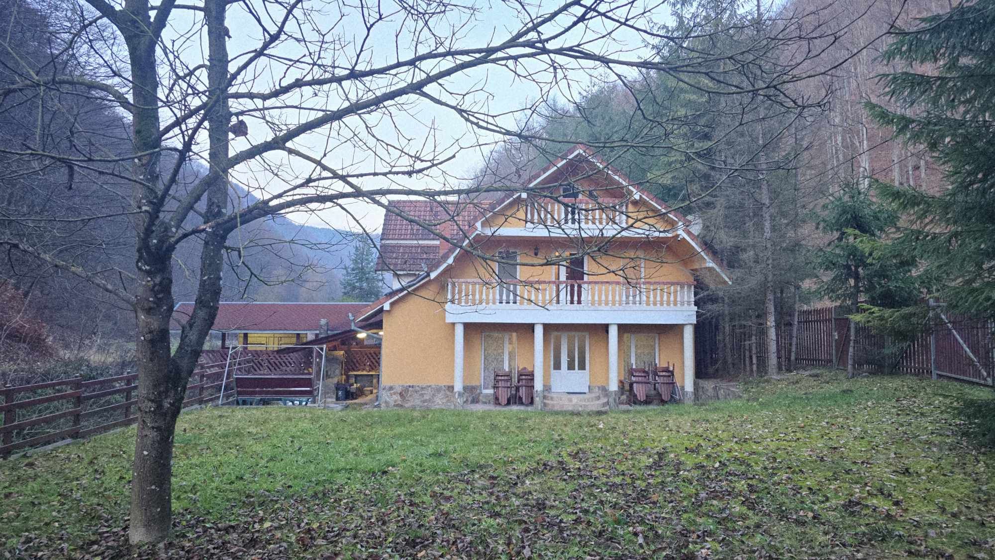 Proprietatea este compusă din două clădiri identice ca compartimentare, cu suprafețe și dotări generoase, teren 600+600, defalcate cadastral suprafață totală 1200 mp, două corpuri de proprietate unite între ele pe care în descrierea următoare le vom denumi corpul 1 si corpul 2 cu suprafețe de 170 mp respectiv 200 mp, suprafața totală 370 mp, construcție relativ nouă construită cu simt de răspundere, cărămidă, izolație exterioară și multe altele. Filigorie din lemn masiv care unește cele două intrări ale corpurilor 1 și 2 în spațiu comun și care se extinde de la nivelul clădirilor până peste pârâul care traversează proprietatea, completând momentele de relaxare și întărind cadrul mirific pe care se află proprietatea și panorama acestei proprietăți.