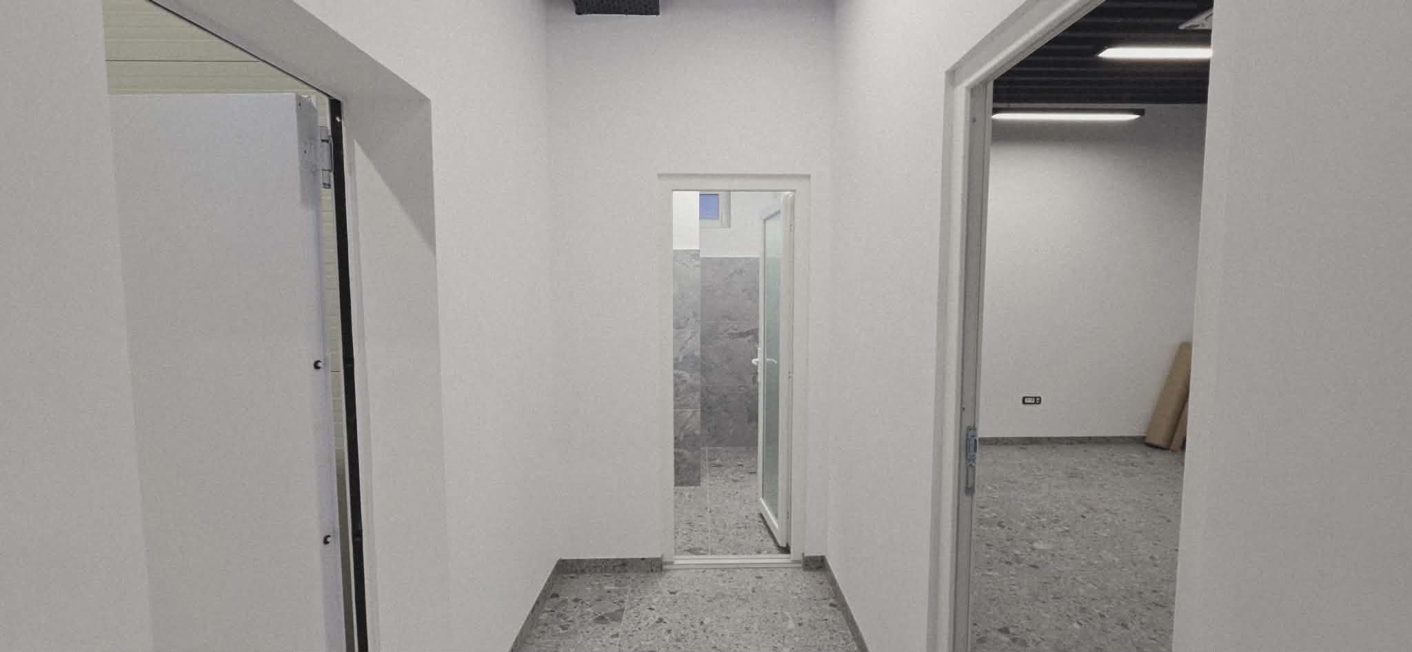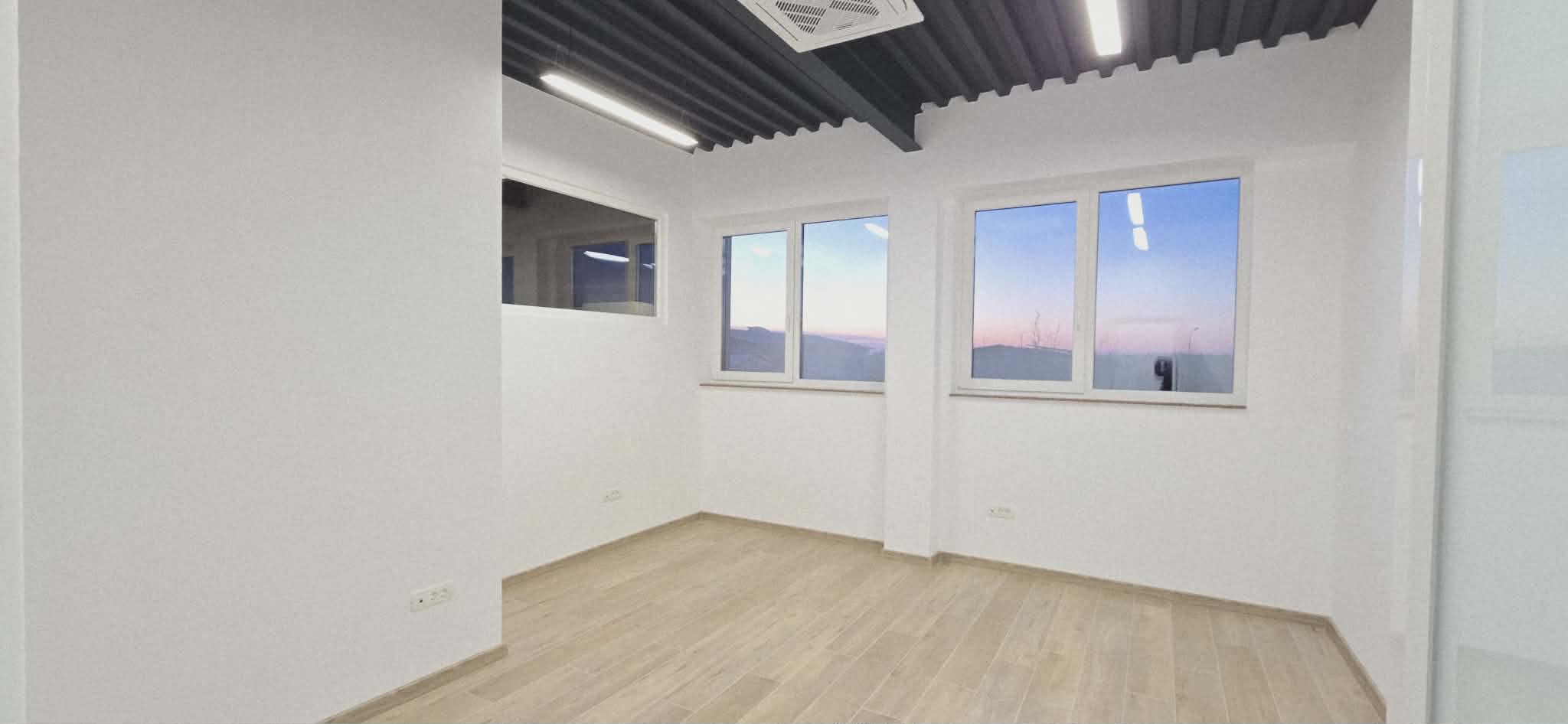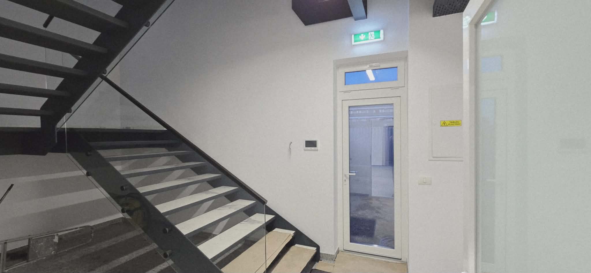 Pentru aceasta hala, se pune la dispozitia clientului si un spatiu de showroom cu spatii vitrarte mari ( usi cu deschidere larga ) spatiul de parter continuand cu intrare directa in hala sau si din exterior, holul de intrare care face legatura cu etajul superior cu birouri si spatii amenajate, vestiare, grupuri sanitare, sala de mese, toate acestea cuprinse in suprafata de 118 mp, in dotari cu acces separat, grupuri sanitare impecabil amenajate si finisate. Totodata curtea este imprejmuita cu sisteme de supraveghere video, sisteme de iluminat LED, locuri de parcare in curte si in fata showroomului, intrare dubla cu porti automate.