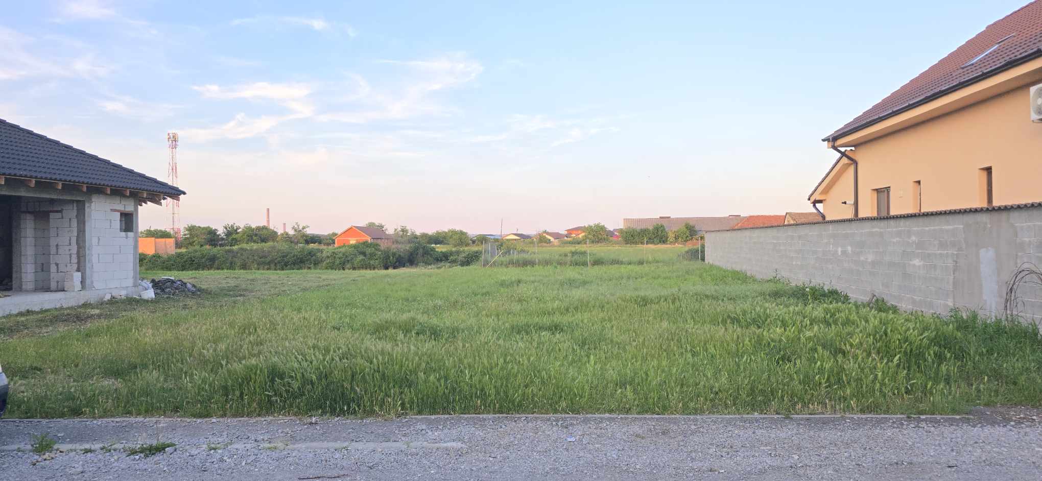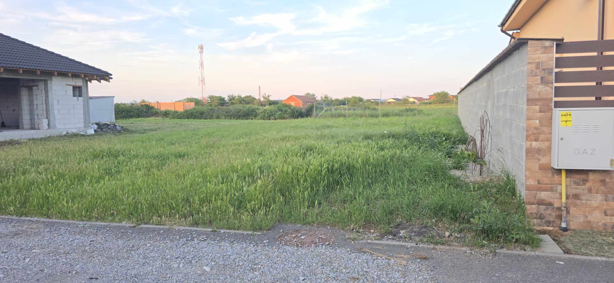 Terenul se afla pe o strada cu imobile locuite, mai putin acest lot liber. Proprietatea dispune de utilitati complete, apa, canalizare, curent, inclusiv gaz.